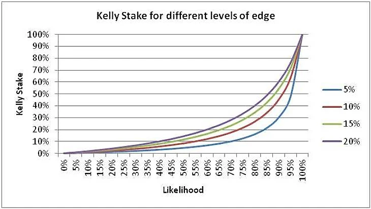 График ниже показывает, как ставка Келли варьируется в зависимости от макс. ставки и вероятности.