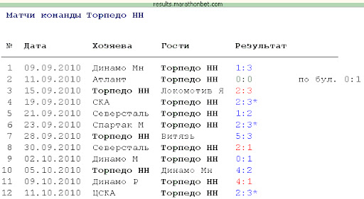 • 09.09.10 Динамо-Минск - Торпедо НН 1:3 (0:0, 1:1, 0:2)