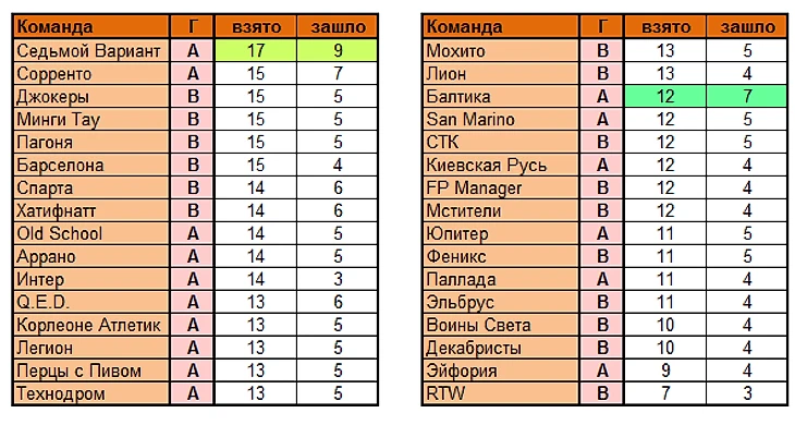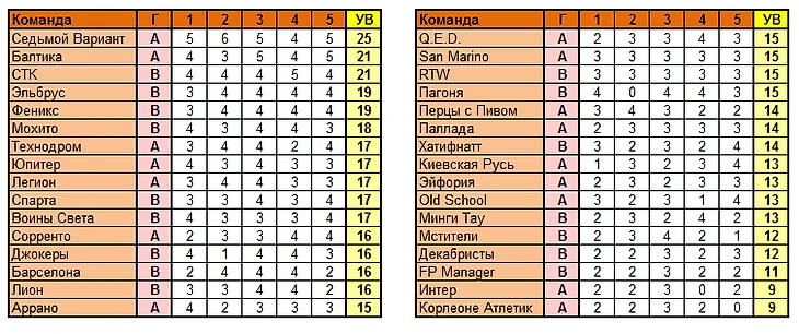 Лучшая команда тура по сумме УВ в целом: Седьмой Вариант (25 вариантов)