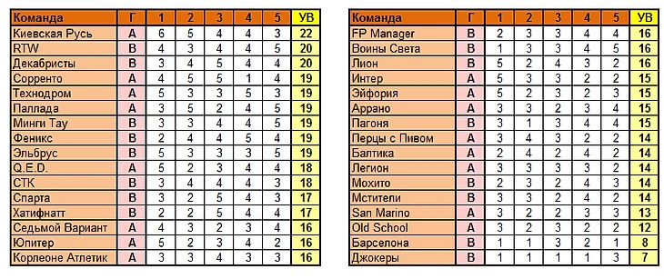 Лучшая команда тура по сумме УВ в целом: Киевская Русь (22 варианта)