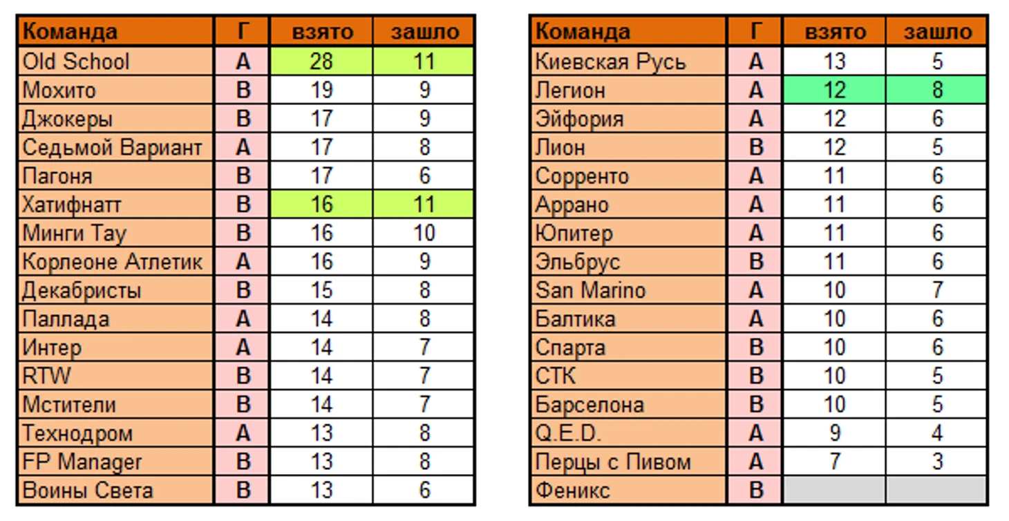 Заключительный тур предварительного этапа чемпионата выдался жарким не только в плане эмоций, но и в ракурсе угадывания вариантов. Многим командам нервный отрезок не помешал показать солидный результат. 22 команды из 31 принявшей участие в туре, набрали в сумме 20 УВ и больше, 3 игрокам удалось выбить 7 из 7. Если говорить о выставленных общих линейках, то 3 коллектива смогли попасть в 10-11 результативных позиций, что происходит довольно редко.