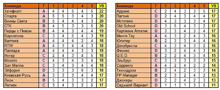 Лучшая команда тура по сумме УВ в целом: Хатифнатт (22 варианта)