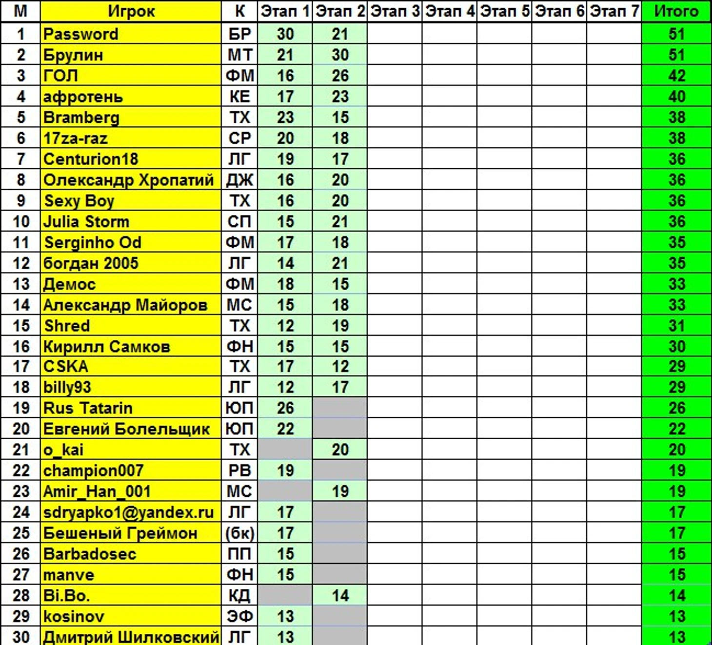 Итоговая таблица после второго этапа: