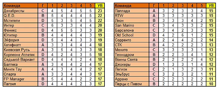 Лучшая команда тура по сумме УВ в целом: Декабристы (23 варианта)