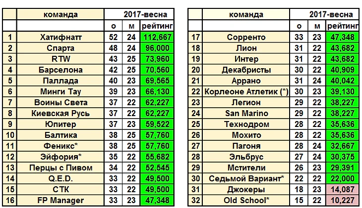 Перед последним туром чемпионата продемонстрирую таблицу рейтинга на текущий момент. В ней учтены результаты и недавних кубковых стадий, и 1/4, 1/2 финала.