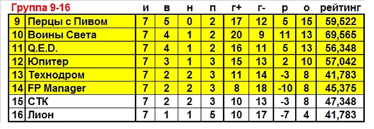 1. Дмитрий1987 (1-11-15-28-29-34-37) - Drugs, sex & alcohol (6-11-14-15-29-35-37) 0:2 (3)