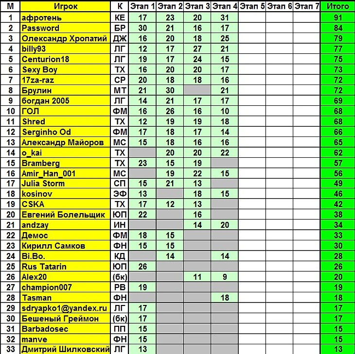 ЛЧБ. Итоги 4 этапа. Анонс 5 этапа
