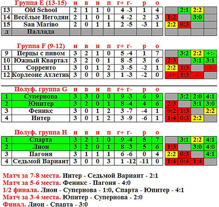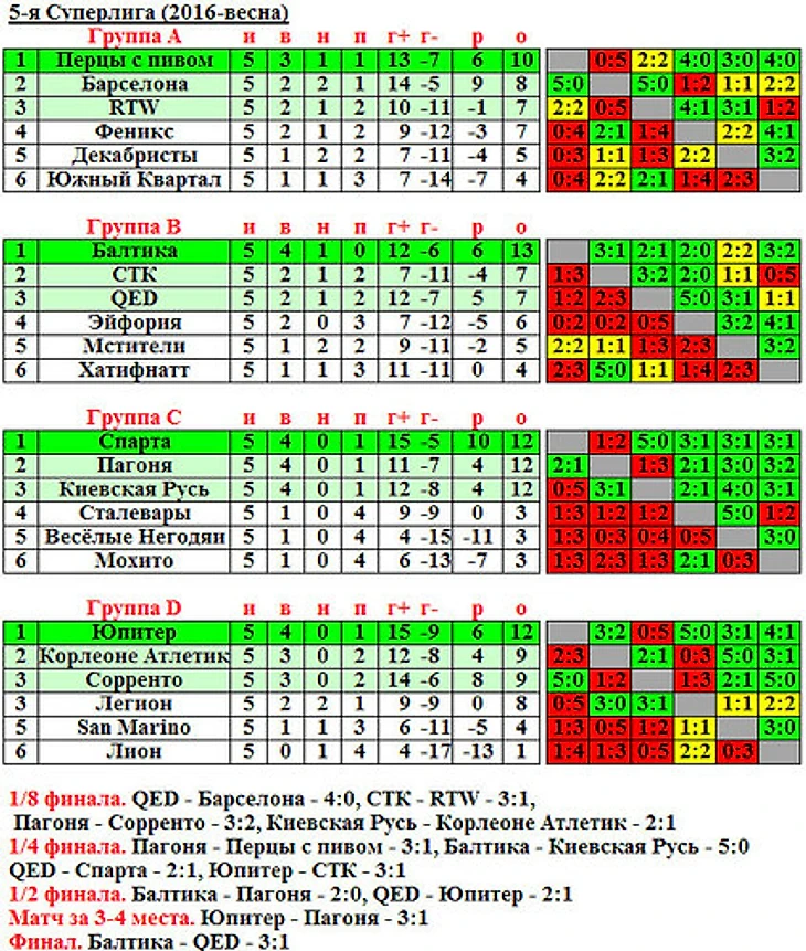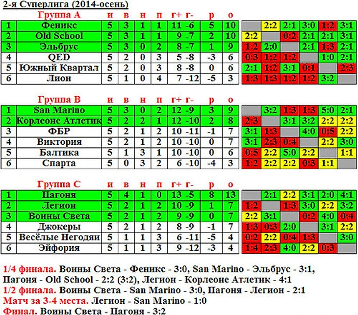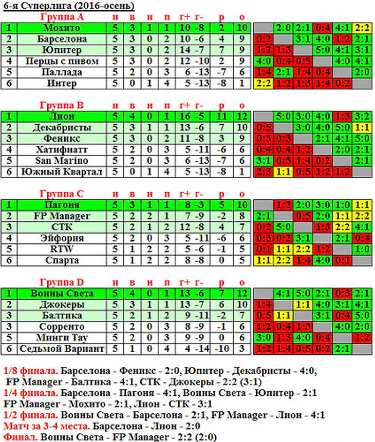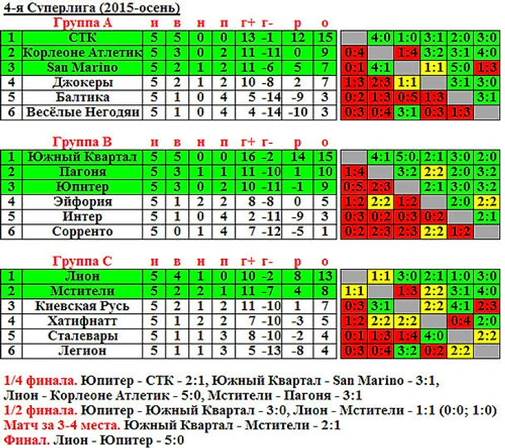Лучшая разность голов в групповом турнире - +14 (16-2) (Южный Квартал, 2015-осень)
