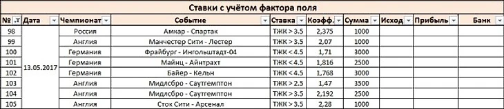 Ну вот и всё на сегодня) Ставок по стратегии, учитывающей фактор поля, сегодня на парочку больше, чем ставок по старой схеме. Так получилось, что кроме фринцузского чемпионата, ещё и Серию А с испанской Примерой сегодня на сыграем. Не страшно, завтра наверняка что-то наверстается) Как обычно, для тех, кому лень было читать всю писанину, сводная информация по всем вариантам ставок - налетайте: