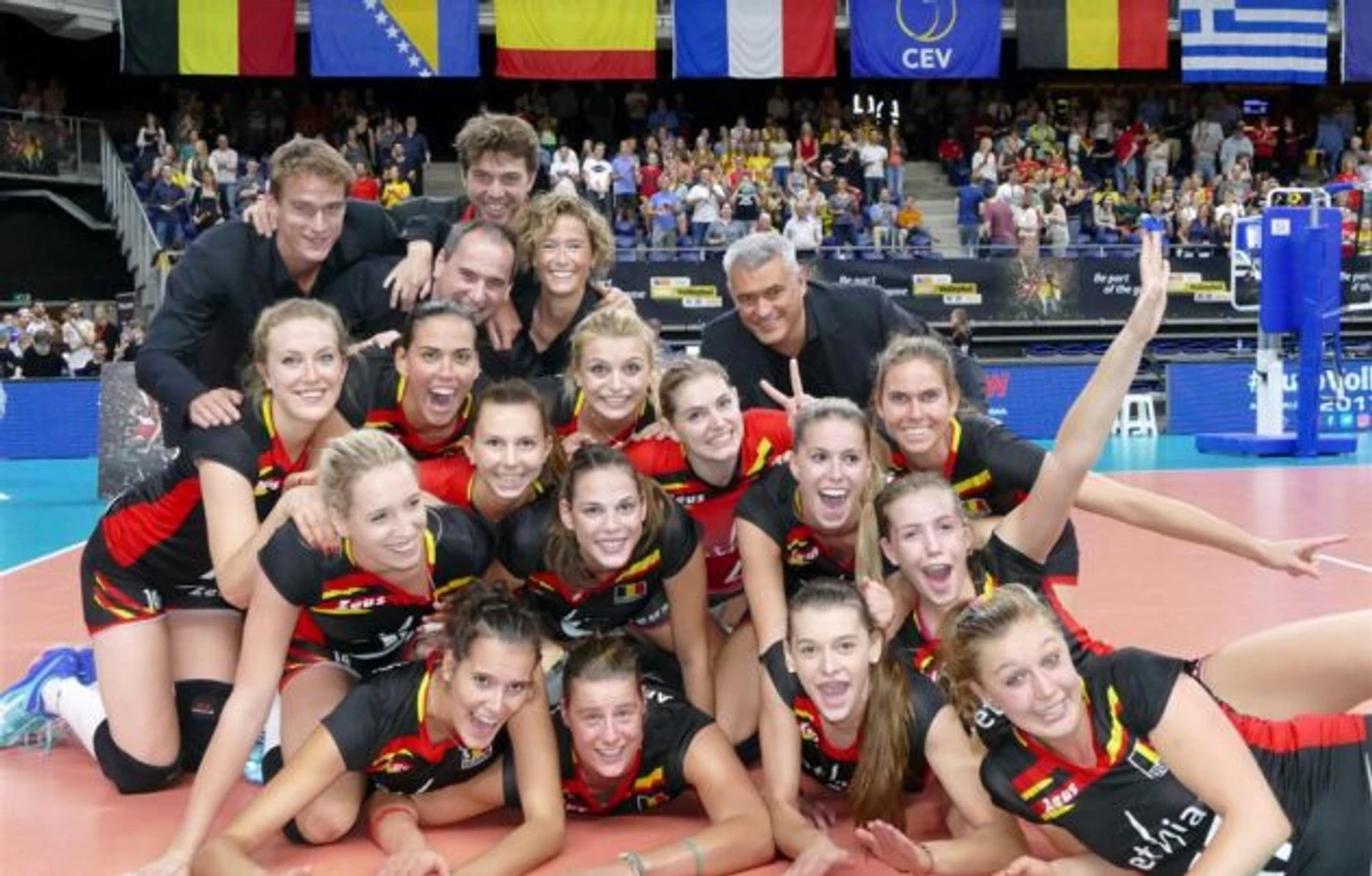 С бельгийками проще, т.к. они хорошо знакомы. Нет у них нескольких человек , но в остальном знакомые все лица. Вчера упор был на тех кто играет в Бельгии и команды сгоняли 1-1 в борьбе. В третьем и четвертых сетах появилась Лейс(она капитанила) и Фрея Альбрехт (Ван Хекке так и не вышла вчера) и Бельгия выиграла эти сеты уже гораздо увереннее 25-17 25-16