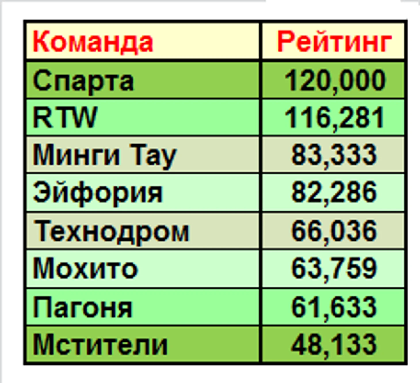 Команда, лучше всех реализовавшая открытое пространство: (Минги Тау, 52,38%, 11 из 21)
