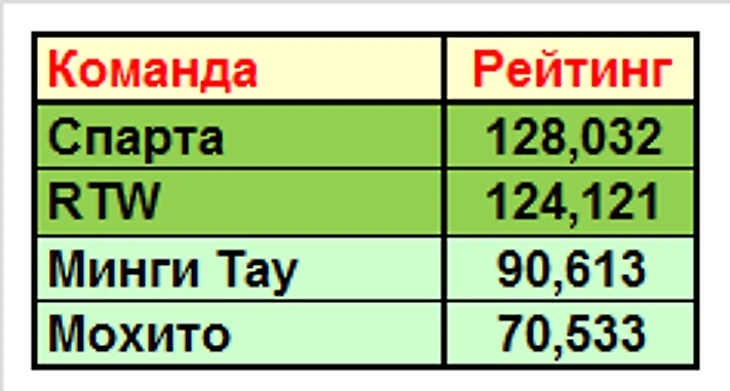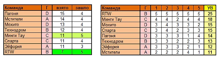 Лучшая команда тура по сумме УВ в целом: RTW (25 вариантов)