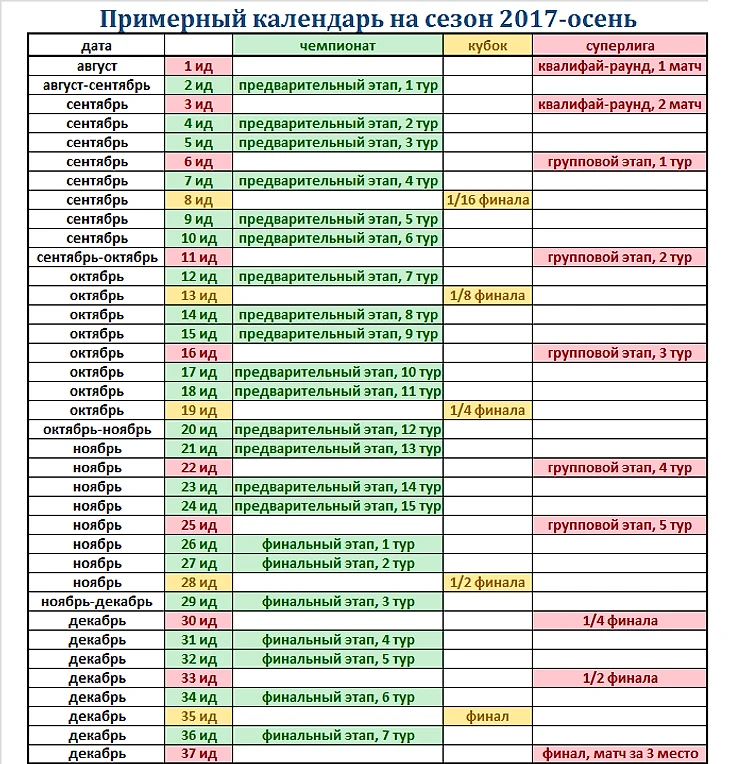 Здесь я прервусь, чтобы поместить примерный календарь предстоящего сезона для наглядности, после чего продолжу объяснения.
