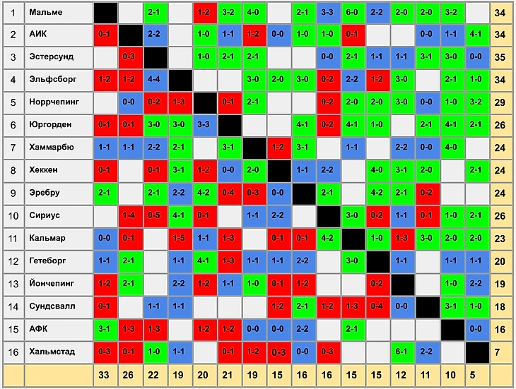 У АФК, на мой взгляд, задача проще – добрать им осталось 4 очка, и тогда они органично вписываются в мою таблицу. Вопрос: где взять эти 4 очка? Кто из Норрчепинга, Эстерсунда, АИК или Хеккена, сделает Эскильстуне такой подарок? Эти нет, эти из года в год, мотивированы на спортивные достижения, единственное сомнение в Хеккене – вот они, из "семейных" соображений, в определенных обстоятельствах, могут слиться, что подтверждают майские 0-0. Тогда остаются Эребру, что вполне вероятно, учитывая склонность Эребру к «странным» результатам и отсутствие спортивно-турнирных задач. Кальмар? Ну нет, Кальмару, тогда полный… Хальмстад? Возможно, но эти ребята, сами сражаются за выживание, и рассчитывают на 3 очка от АФК. Сириус! Сириус! Вот эти голуби! А что? Они в беззаботном настроении, в последнем матч в гостях у Сундсвалла, одержали волевую победу, короче жизнь прекрасна! Смотрел этот матч и в отчете изложил все, что я понял. Но еще необходимо добавить то, что команда Бергстранда, умеет напрягаться и взвинчивать темп, но на очень короткие промежутки времени и только по его команде – это явно было видно по ходу игры. А голы в ворота Сундсвалла, были не слишком логичными – дальний удар и откровенный ляп защитников соперника. При этом сами получили два чистых выхода один в один с вратарем от Халлениуса, и кучу моментов у своих ворот – сопернику, просто не повезло.
