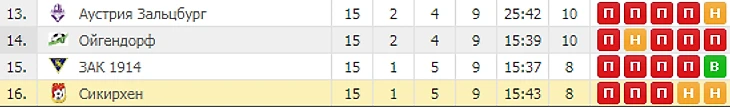 Итоги: 0-7 (7-39 по разнице мячей) я взял игру с Куфштейном за прошлый сезон (4-0), для наглядности. Как видим Сикирхен полностью бесполезный на выезде против топ-команд лиги, иногда они забивают, но при этом пропускают огромное количество голов, а так как атака Анифа лучшая в лиге то опять думаю выхватят.