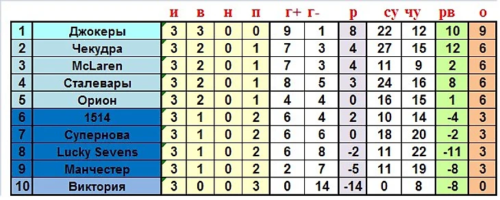 *Чекудра выше McLaren'a из-за лучшей разницы су-чу.