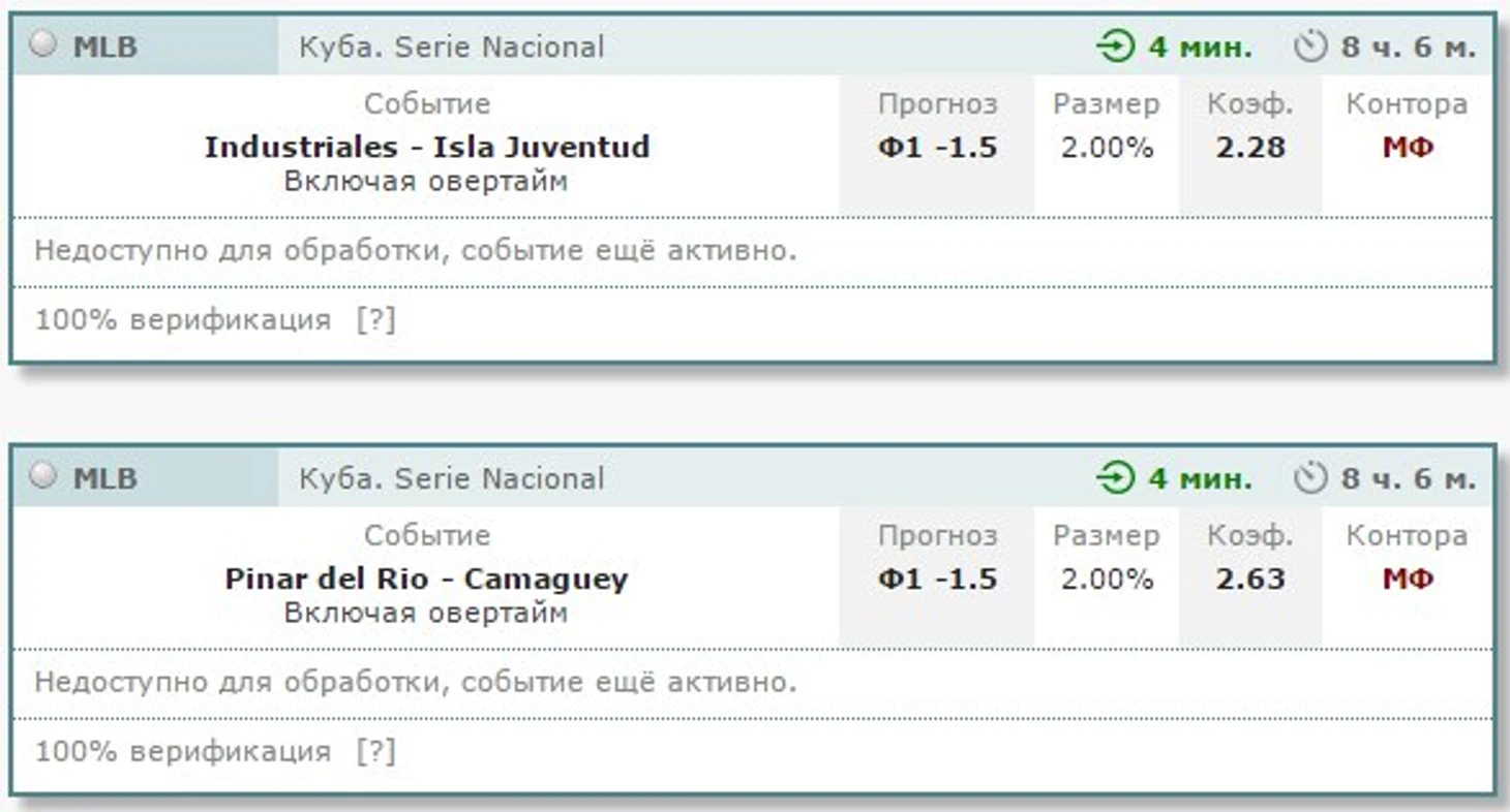 №4 Industriales - Isla Juventud. Ф 1 (-1.5) Коэфф 2.28 200 Марафон 9:12 ---