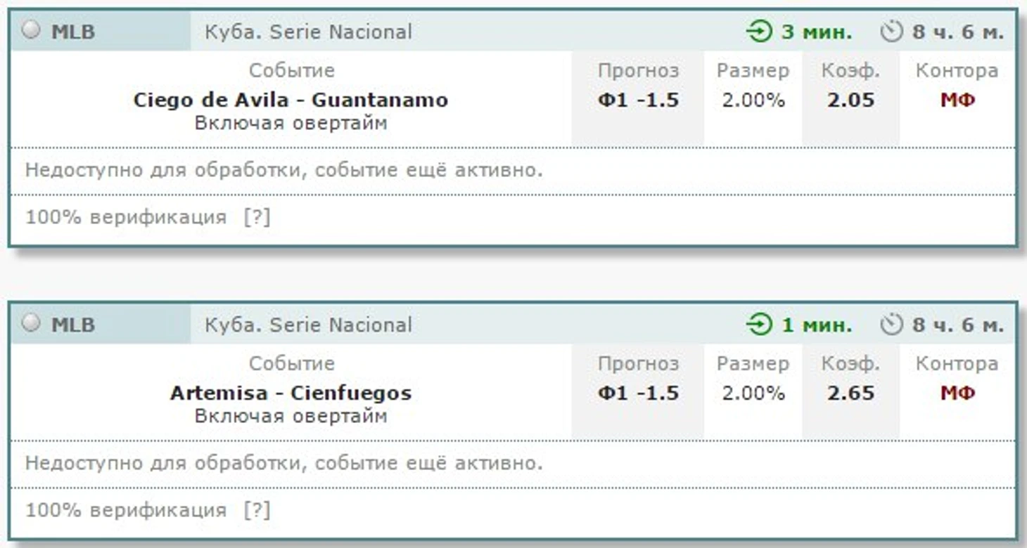 №6 Ciego de Avila - Guantanamo. Ф 1 (-1.5) Коэфф 2.05 200 Марафон 1:0 ---
