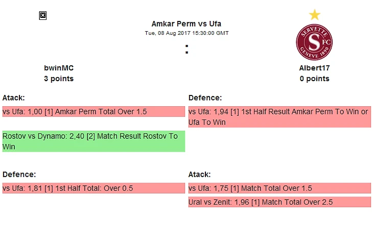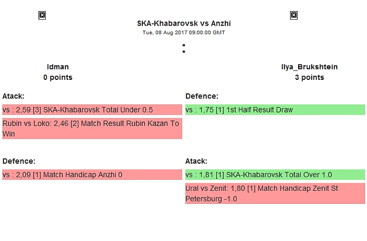 А отказываться есть из-за чего, ведь паралельный матч, который никто не захочет упустить пройдет между лидером турнира Gold, к текущему моменту не отдавшего ни одного очка своим соперникам, и il1723, который явно набрал крейсерскую скорость из 8 заходв в 9 последних прогнозах, является лидером по балансу. Посмотрим сможет ли всесильный Курбан остановить мчащийся на всех порах паровоз!
