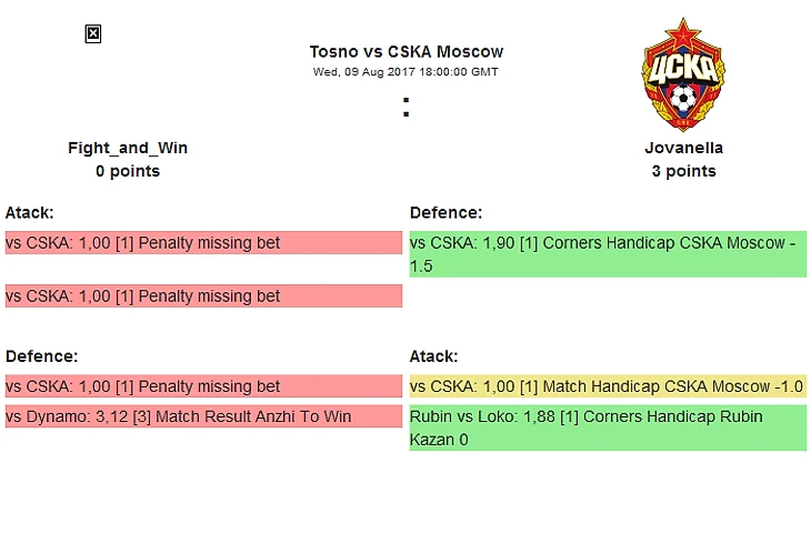 Ну и в последнем матче среды встретятся Fight_and_Win и Jovanella. Первый умудрился слить все 12 прогнозов и думаю сейчас это самое плохое время встречаться с ним, сочувствую Jovanella, ведь статистика не врет, должен Fight_and_Win показать серию заходов, можно попасть под копыта так сказать !