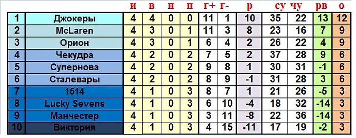 Так как и Джокеры играли с К2-К4, и Виктория встречалась с К7-К9, необходимо объединить все очковые группы в единую К1-К10. Джокеры встречались со Сталеварами, поэтому будут играть против К7 - 1514; McLaren выходит на Lucky Sevens, ибо только что встречался с коллективом Ильи Кранта, а вот Ориону придётся иметь дело со "стальными", ибо между ними очной встречи ещё не было; в оставшихся парах Чекудра играет с Манчестером, а Супернова - с Викторией по правилам швейцарки.