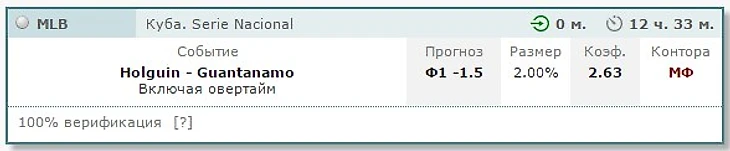 Сегодня завершается вторая серия в кубинсом бейсболе и закрываем мы ее одной ставкой.