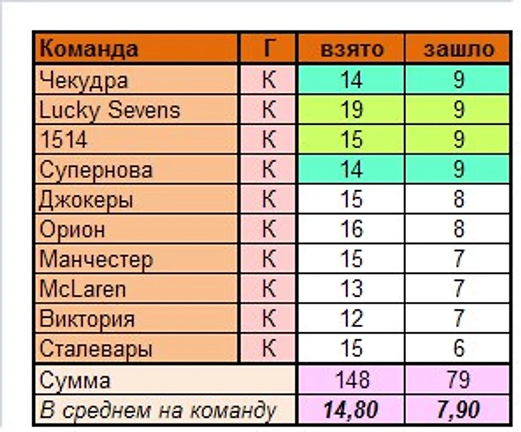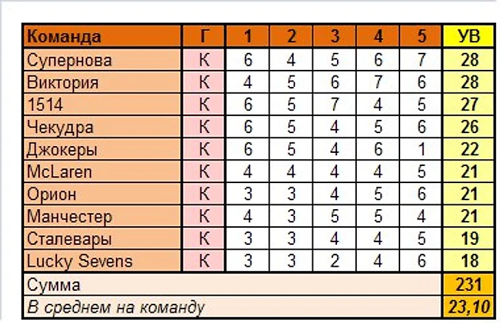Лучшие команды тура по сумме УВ в целом: Супернова, Виктория (по 28 вариантов)