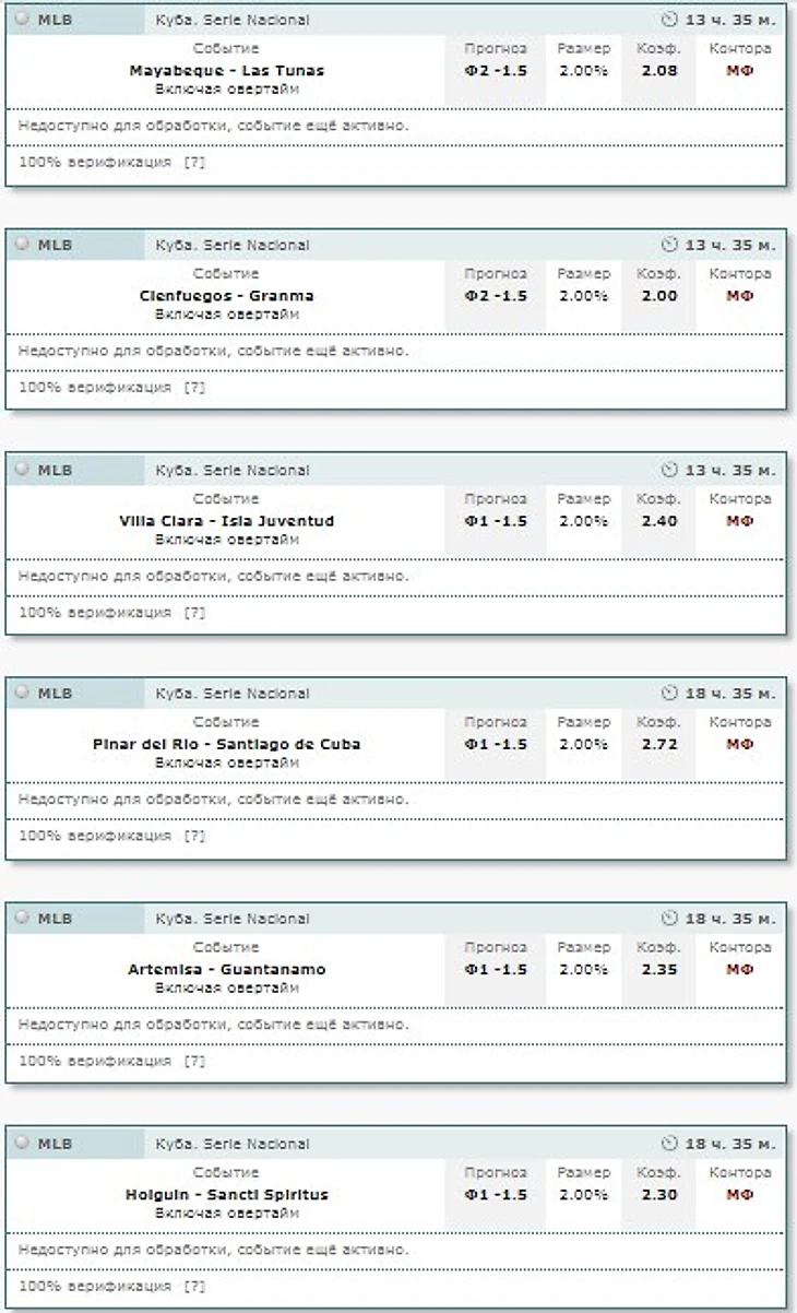 №37 23:00 Artemisa - Guantanamo. Ф1 (-1.5) Коэфф 2.35 200 Марафон 4:3 ---