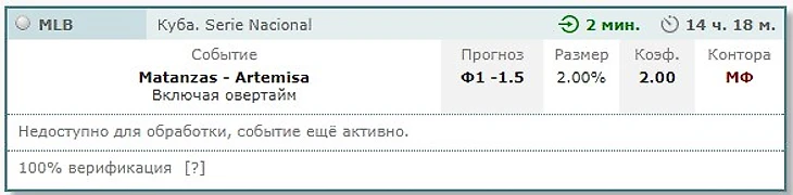 №47 21:00 Matanzas - Artemisa. Ф1 (-1.5) Коэфф 2.00 200 Марафон 10:5 +++