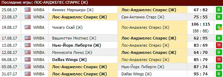да и судя по последним играм, они начали снова набирать форму, а то был у них не лучший период. Они как видите грохнули недавно Линкс на выезде, меня это очень удивило, я тогда ставил против Спаркс. Потом они и Вашингтон грохнули в 33 очка, вытянули игру с набравших ход Чикаго, ну и Финикс обыграли на выезде два дня назад. Спаркс в форме и нужно этим пользоваться, у них больше нет выездных игр, только домашние и они больше терять очки не будут, а Линкс вполне может где то и проиграть (два выезда к Чикаго и Индиане).