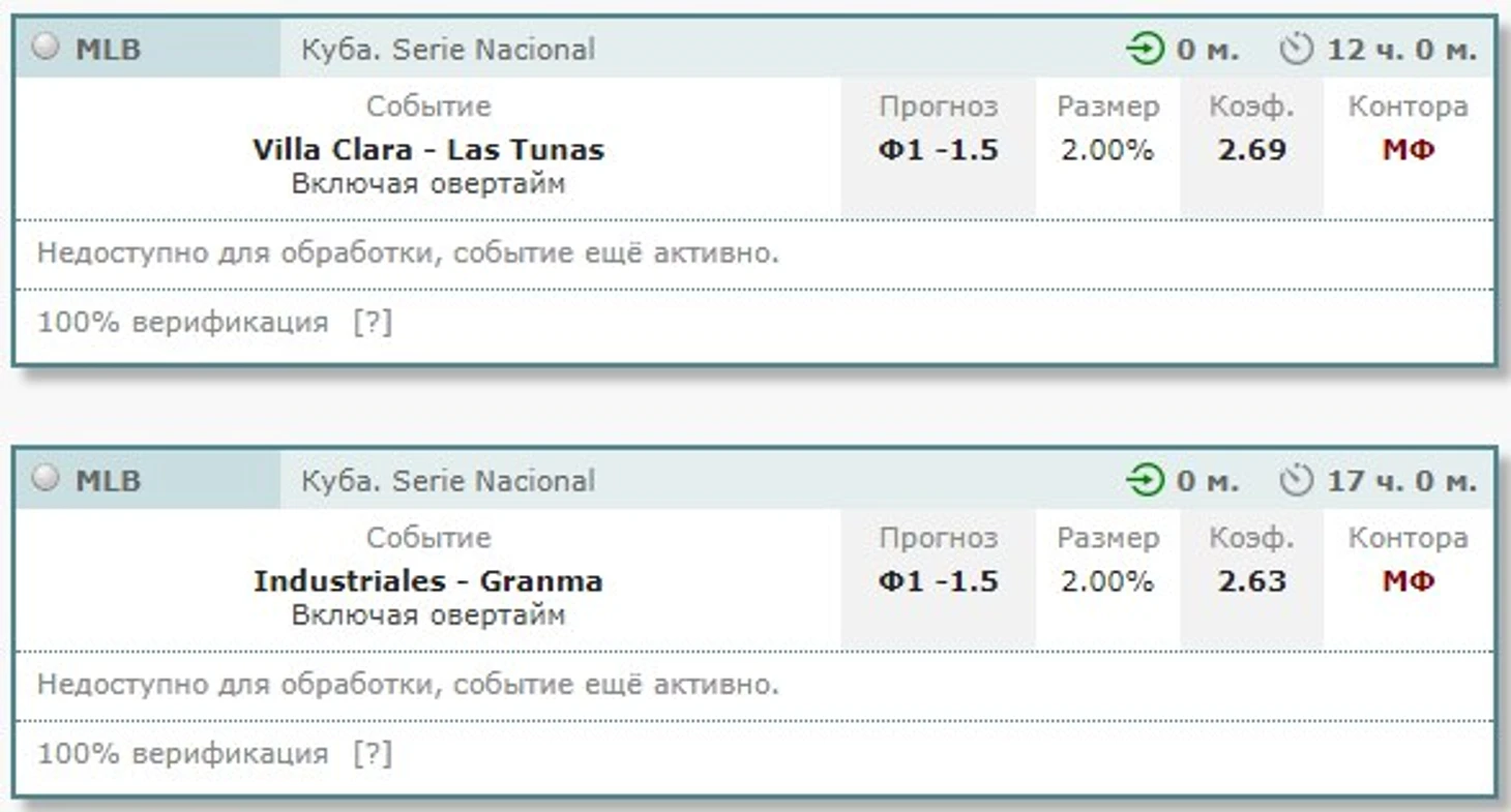 №49 02:00 Industriales - Granma. Ф1 (-1.5) Коэфф 2.63 200 Марафон 4:3 ---