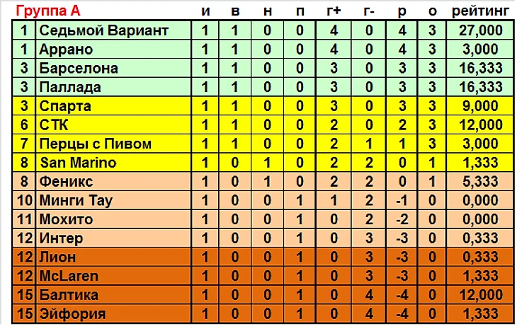 1. Егор Горбунов (1-4-7-11-14-29-34) - ShinaYar (3-6-11-14-25-29-34) 3:0 (3)