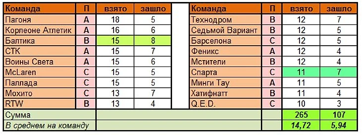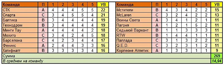 Лучшая команда тура по сумме УВ в целом:  СТК (22 варианта)