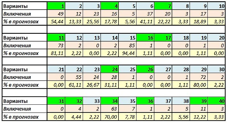 Сыграно вариантов: 14 (1-4-7-11-16-17-24-26-31-32-34-36-39-40)