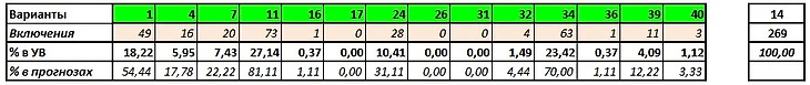 Сумма угаданных вариантов: 269 из 630 (42,70%)