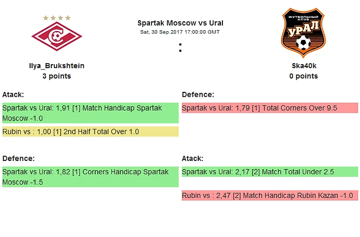 Последний матч субботы пройдет между Ilya_Brukshtein и Ska40k, сам матч их команд будет наинтереснейший по моему мнению, будет очень интересно посмотреть какие ставки выберут игроки, мне кажется в этой паре будет громкая сухая победа одного из игроков или 0-0, настолько тяжелая линия на этот матч.