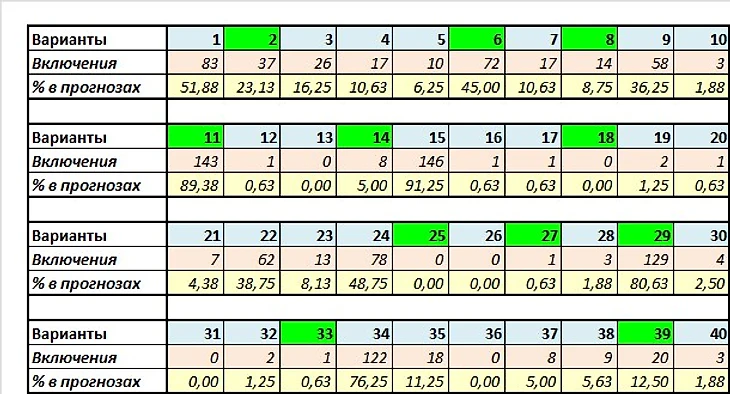 Сыграно вариантов: 11 (2-6-8-11-14-18-25-27-29-33-39)