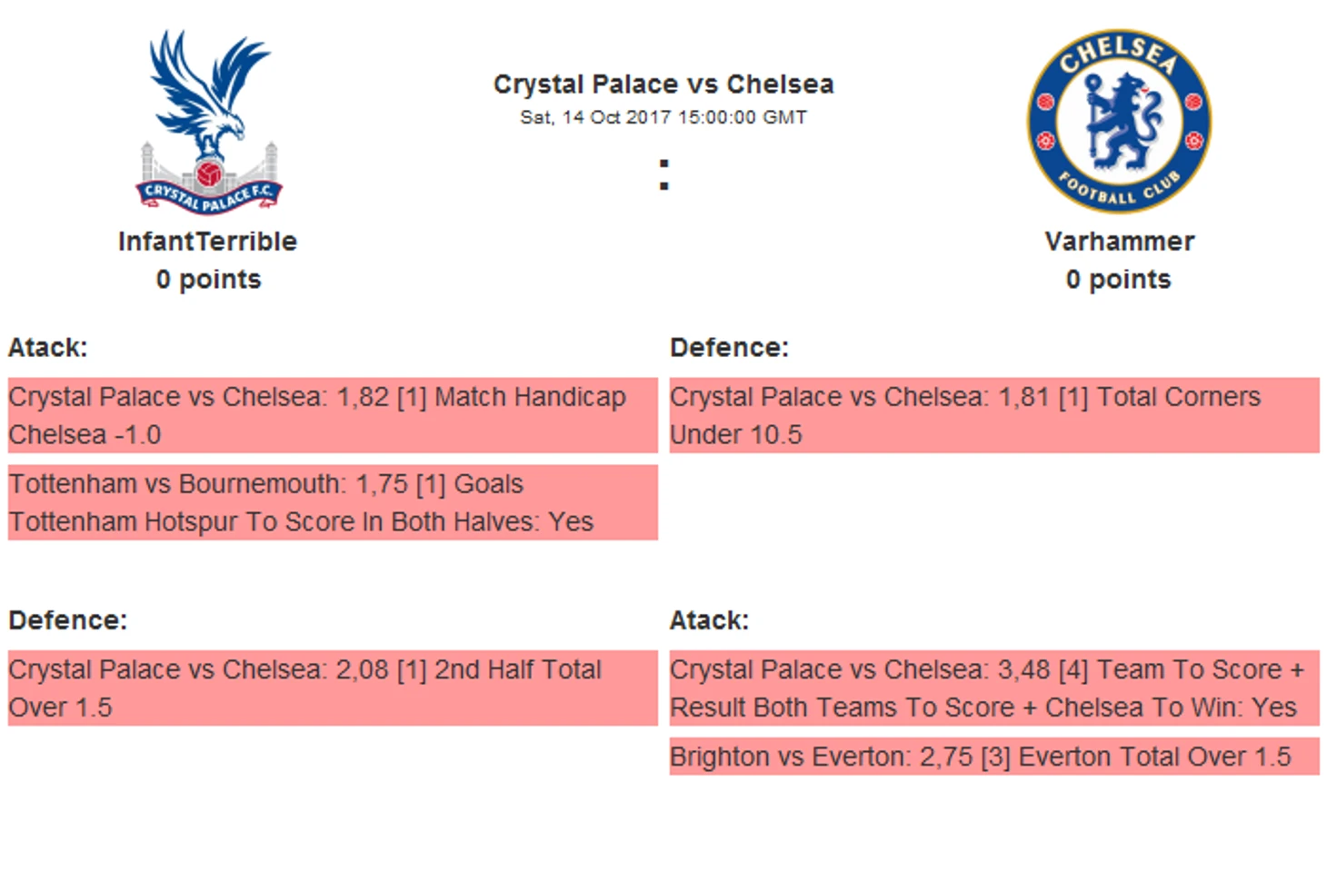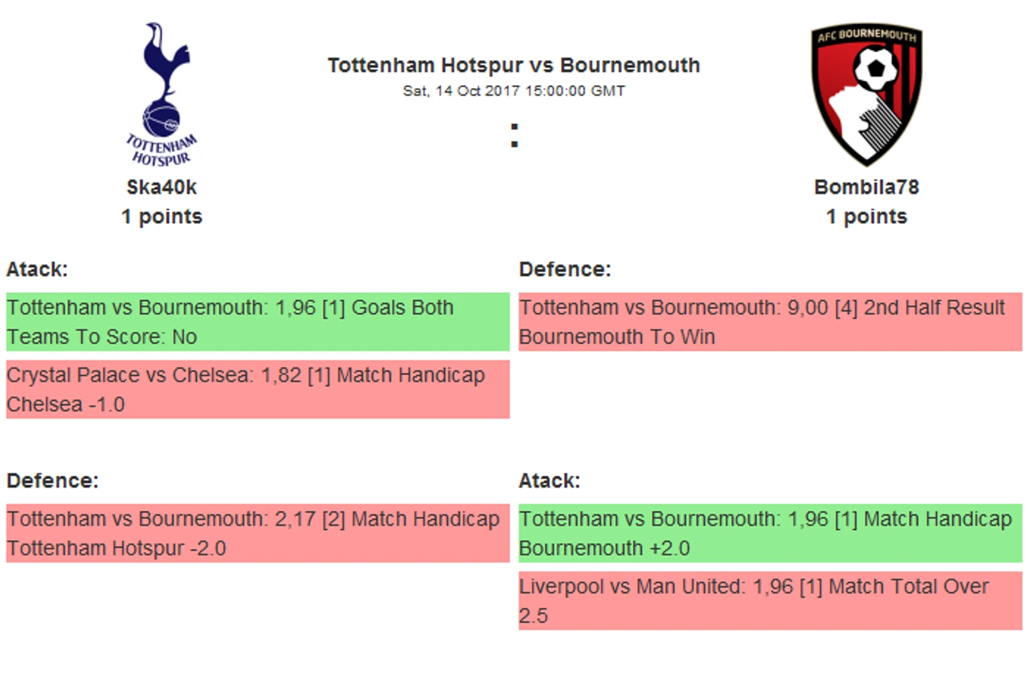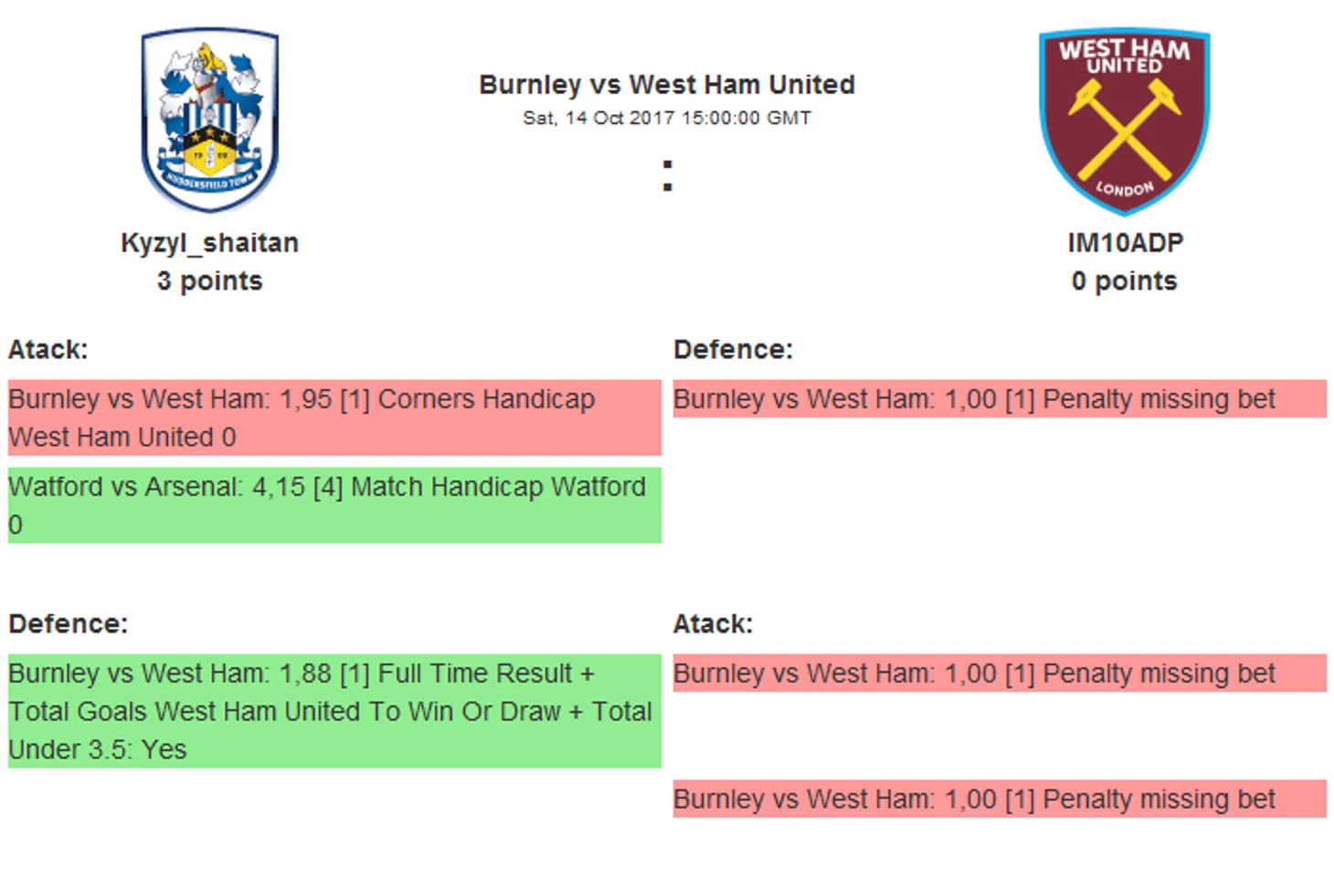 Прикольно получилось в матче Nepal и Quieras, оба выбрали идентичную ставку на другой матч, в их матче одна ставка зашла, а другая для обоих наполовину означала непроигрыш уотфорда. Для Quieras это половина означала возврат, а для Nepal нужно было чтобы было ТМ 3.5 в матче, но игра закончилась 2:2 и Quieras своим возвратом утащил 3 очка в этом матче.