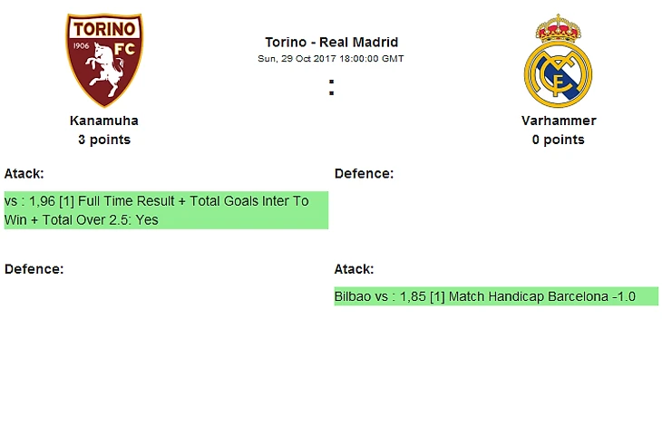 Другой контендер на золото Varhammer будет играть с Kanamuha, который тоже забросил играть в последние пару недель, незнаю появится ли на этот тур, ловить особо нечего ведь, Варх единственный кто не потерпел ни одного поражения в турнире, затащил 12 из 14 ставок на свою команду Реал Мадрид. Скажите честно, сколько ставок вы выиграли на Реал Мадриде ? А сколько было тех что были с коэфом выше 1.75 на матчи королевской команды ? То то же, а Варх тут клепает налево-направо. Еще один ставочный качок перформит в эти выходные, всем ставить за Вархом!