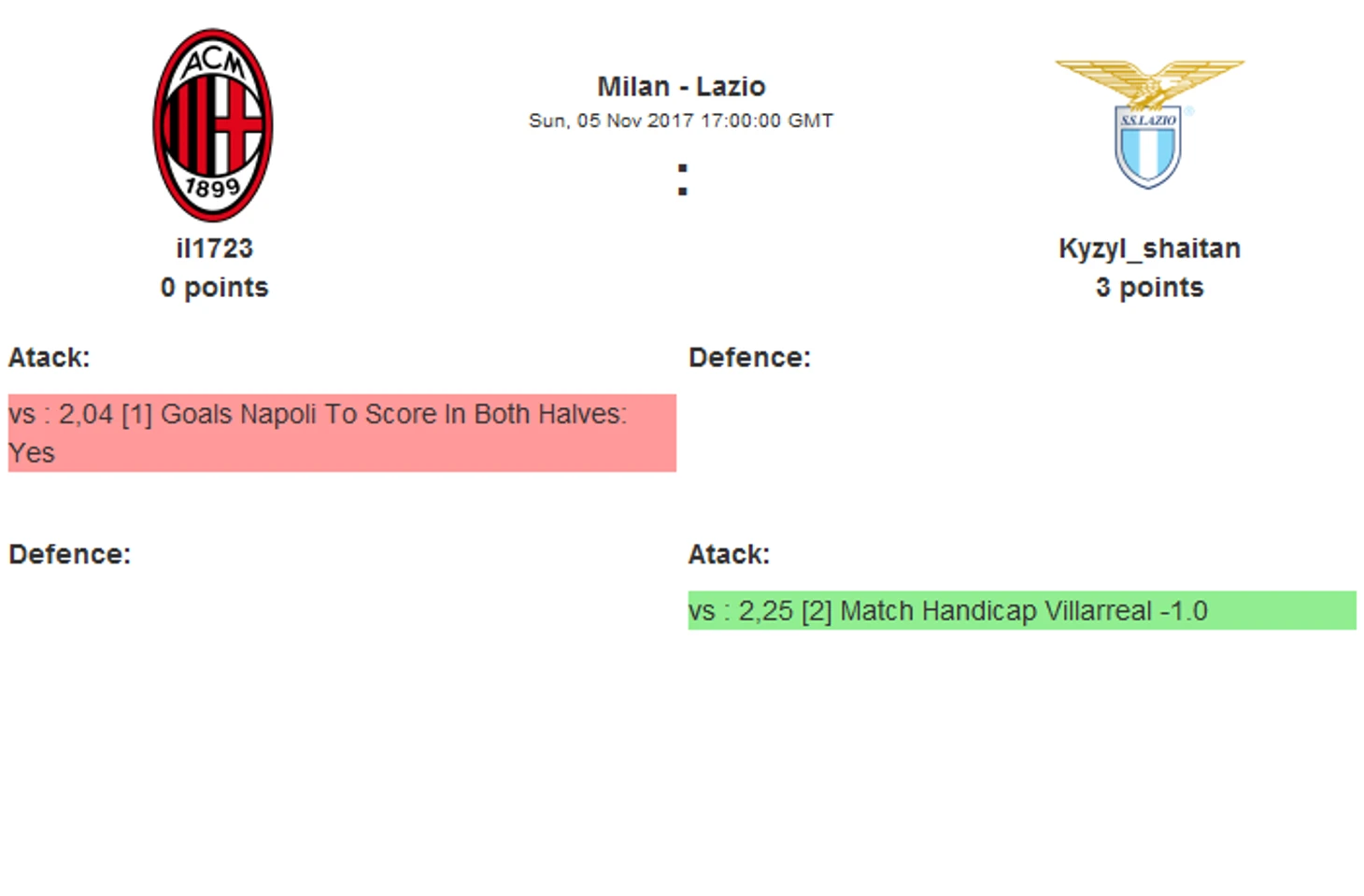 Чуть не оступился и il1723, заход и возврат обычно не приносят у нас победу, но его соперник IM10ADP вновь не порадовал заходом на Юве, одно радует что его команда в Милане победила и, я уверен, ему больше понравилось, нежели чем случись наоборот!