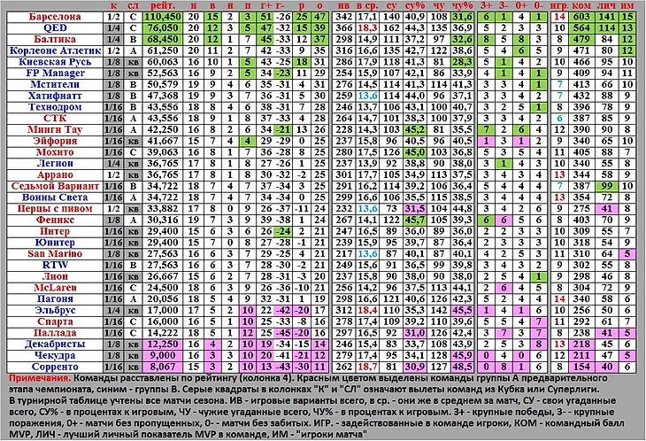 Постараюсь не слишком досаждать вашему вниманию занудными текстами, поскольку даже одного беглого взгляда на универсальную таблицу сезона вполне достаточно, чтобы всё понять.