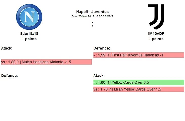 Ну и заключительная игра нашего небольшого турнира пройдет в Наполи, где Штирлиц сразиться с Имамом. Имам провалил первый турнир, тем не менее до сих пор остается, думаю на долгие годы вперед, главным спецом по Ювентусу, думаю в этот раз он соберется и покажет Шайтановский результат за турнинский клуб! Штирлиц в свою очередь решил что Дженоа скучна и однообразна и в этот раз решил надрать нам зад с Наполи, ну-ну, менять лошадей на переправе, говорят, не хорошо !