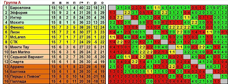 Также пусть поломают голову над Спартой, призёр 3 последних чемпионатов в декабре будет бороться лишь за проходные места в СЛ в группе 17-24. После ударной связки туров на МДП сборных в самом начале «спартанцы» смогли забить только в 1 (!) туре из 5. Зато концовка далась успешно, и в финальном матче этапа команда одержала очень важную победу над Балтикой, которая позволила выбраться из 13-16 на этаж выше, сказался и выигрыш над Аррано при равенстве очков. У самих аррановцев зацепиться за более перспективную группу не получилось, а хватило бы ведь и ничьи с Маклареном в 15-ом туре… Вместе со Спартой поднялся в 9-12 Седьмой Вариант, который в середине этапа реально претендовал на топ-4, но вторая половина откровенно не задалась… Ещё более катастрофично сложилась она у Паллады, с 5-го тура по 13-ый сплошные поражения… Помимо Балтики, Аррано и Паллады рубиться в 25-32 будут Перцы с Пивом; любопытно, что сразу 2 из 4 полуфиналистов Кубка (Перцы и Аррано) попали в низшую группу чемпионата.