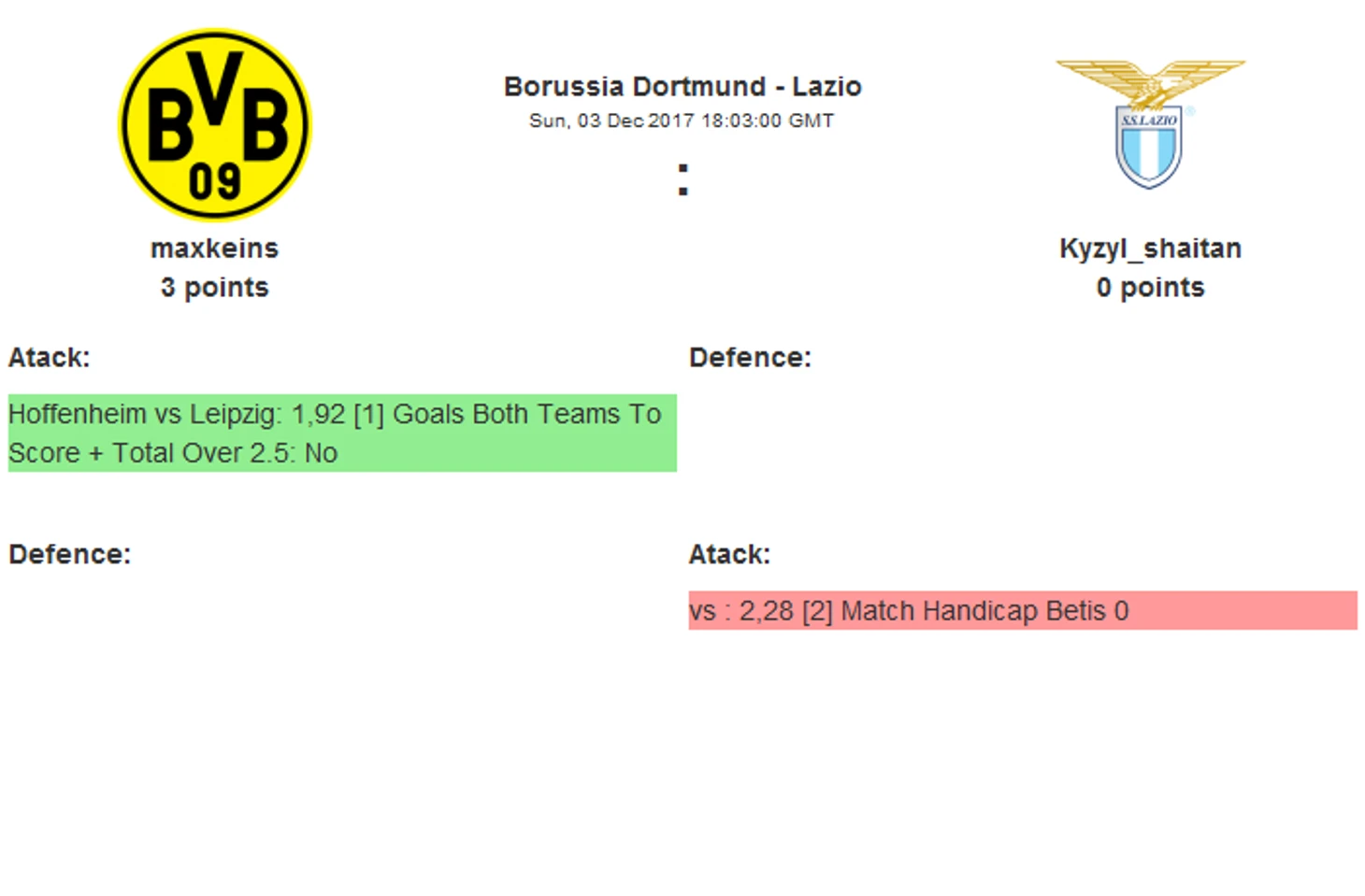 Ну и заключительный матч тура, если новичку maxkeins в первом туре повезло и он вытащил 3 очка, то в этот раз везения не будет. Чемп Шайтан оступился и наверное этим завершил весь лимит потерь очков на турнир.. ждем напалма и выжженой земли в дьявольском исполнении... держись там Max !