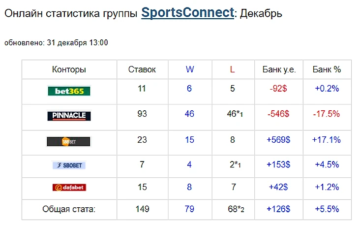 Итоги года от SportsConnect: огромная прибыль в +9353$