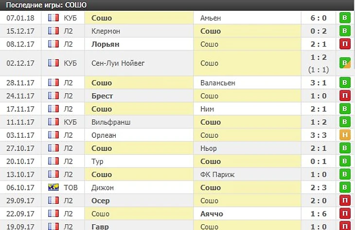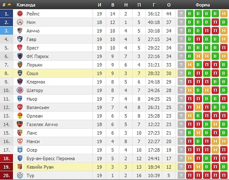 Как видим Сошо сильно прибавил после игр сборных в октябре. Не знаю с чем это было связано, но тренер не менялся. На своем поле сыграли 5 матчей и во всех смогли переиграть соперников. В строй вернулись: защитник Teikeu (13/1), полузащитники Martin (16/10 лучший бомбардир), Fuchs (13/0), Sao (4/0), нападающие Touzghar и Andriadsima (13/0). Конечно есть еще ряд игроков, которые не могут играть, но это не столь существенно, потому что без них уже играли и побеждали. А что касается гостей, то они слабо выступают и имеют вот такие результаты: