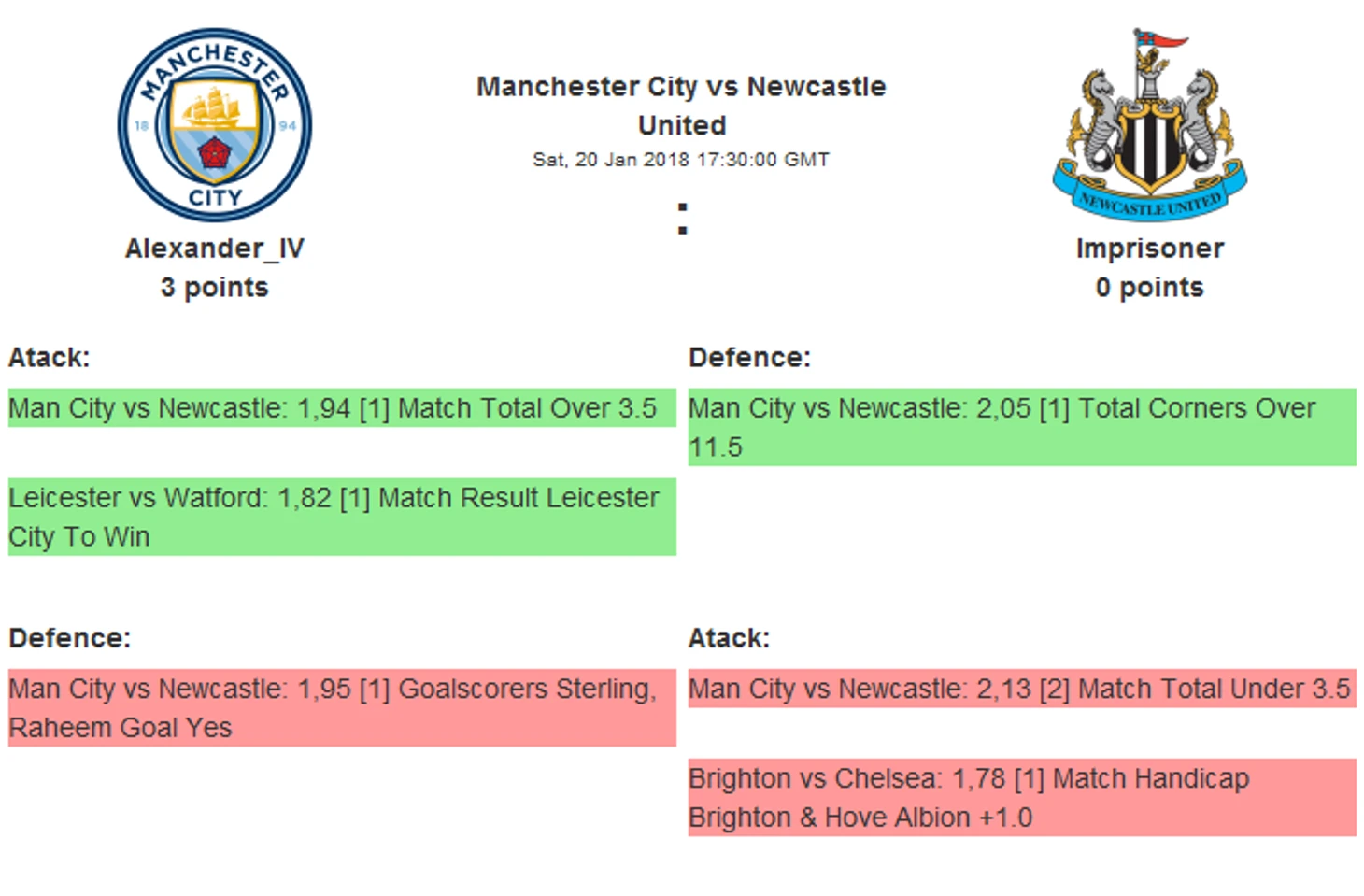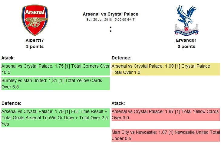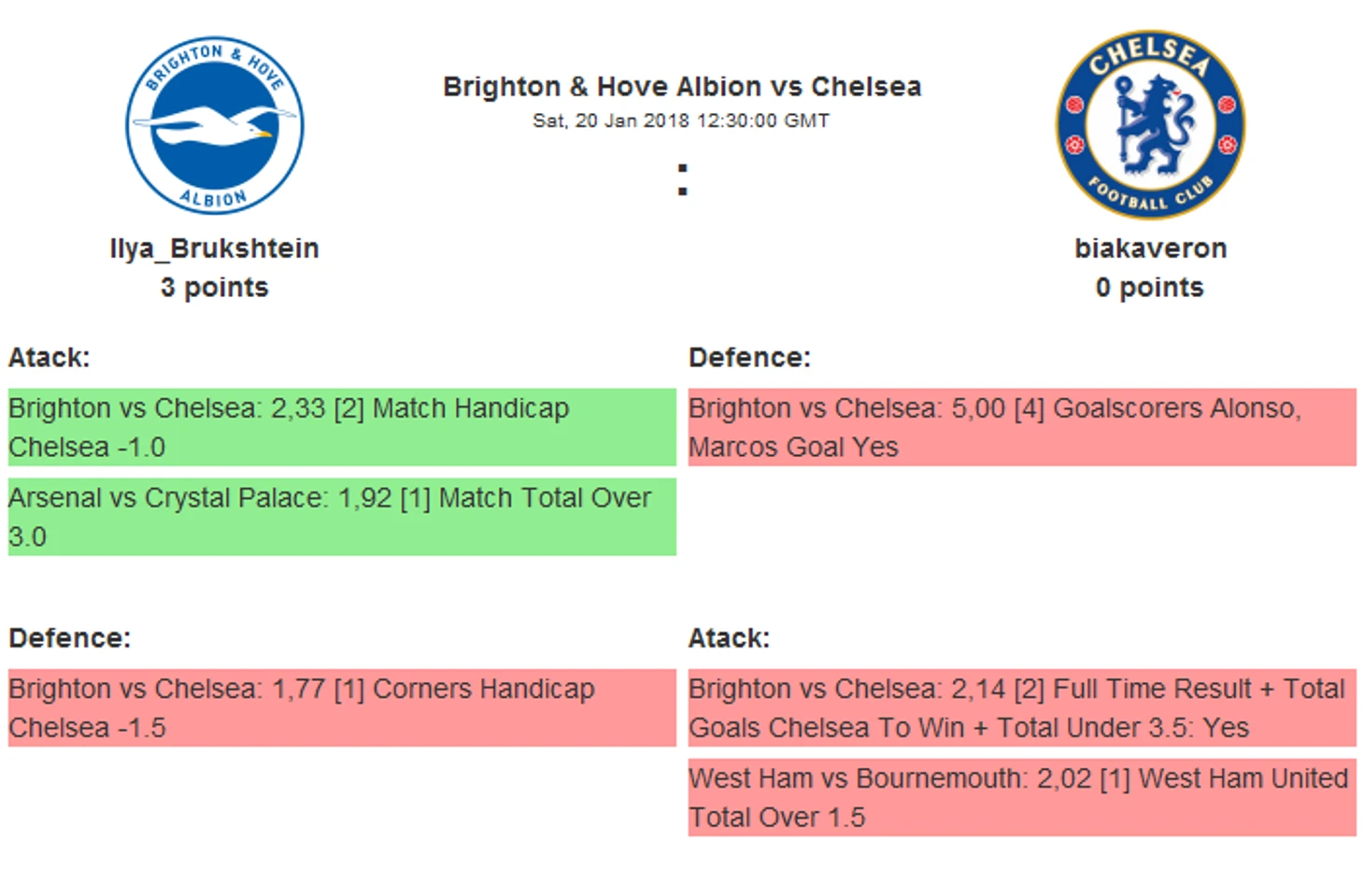 Далее, Альберт17 встретится с новичком турнира Ervand01 на Эмирейтс. Альберт очень сильный капер, но ему, по молодости, не хватает стабильности. Я надеюсь после всех тех турниров что он провел в прошлом году он набрался прилично опыта и в этот раз таки стрельнет, согласитесь парни, он заслуживает быть в призерах! Ну а о Ervand01 нам предстоит многое узнать, новичок отлично показал себя в предсезонке, затащил 2 из 3х ставок, причем мазанул с коэфом 1.9 а затащил 2.09 и 2.53, предсказал что КП выиграет у Бернли например. Кто из вас думал что Бернли проиграет КП ? а он вот знал.