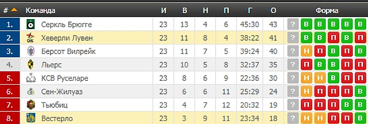 22:30 Хеверле Лёвен — Вестерло Ф1(-1) кф. 1.9 (бетсити) 5%