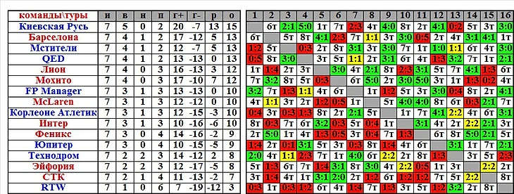 Но, как видите, среди «обиженных» оказались бы, по сути, только две команды, Интер и Эйфория, хотя и при этом их отставание от лидера не настолько катастрофично (5 очков и 7), чтобы его невозможно было ликвидировать за 8 туров.