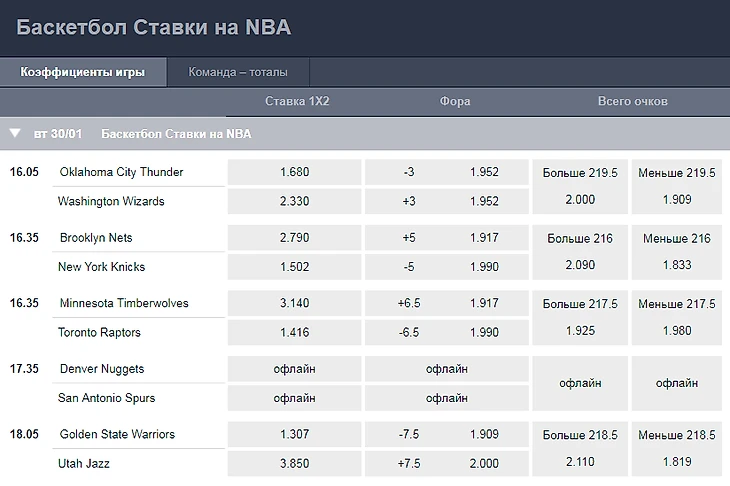 То есть по нашим данным "Тандер" должны победить на 6 очков. При этом не забываем, что у "Вашингтона" сегодня под вопросом участие лидера команды - Джона Уолла. Теперь смотрим чуть выше и видим, что букмекеры предлагают на "ОКС" минусовую фору в -3 очка. Но, как многие из вас уже знают, я не люблю минусовые форы, поэтому мы возьмем чистую победу Уэстбрука и команды за 1.68 по БК "Пиннакл".